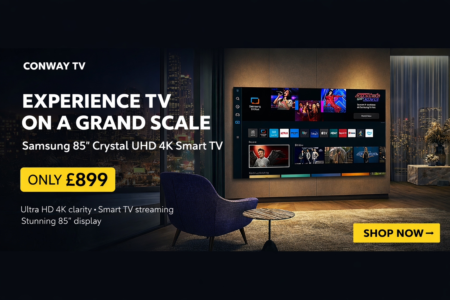 Flexible Payment options available - Tap 028 867 63771 to call us for details - Text us on WhatsApp 07840 882 623 - Email us on sales@conway.tv - We supply quality appliances, TVs & home electronics across Northern Ireland - Opening Hours Mon-Fri: 09:30am-17.00pm Sat: 10.00am-14.00pm.