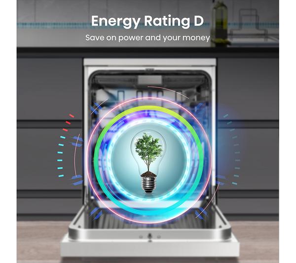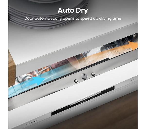 The Hisense HS643D60WUK is a full-size freestanding dishwasher designed to handle up to 13 place settings, making it ideal for family meals or entertaining guests. It features adjustable baskets and a top cutlery tray for flexible loading, accommodating larger or awkwardly shaped items with ease. Operating at a quiet 45 dB, it’s unobtrusive even during work hours. The Quick Wash function cleans lightly soiled dishes in just 15 minutes, perfect for when you need fast turnaround. Additionally, Auto Dry automatically opens the door to release steam, ensuring your dishes come out perfectly dry every cycle.