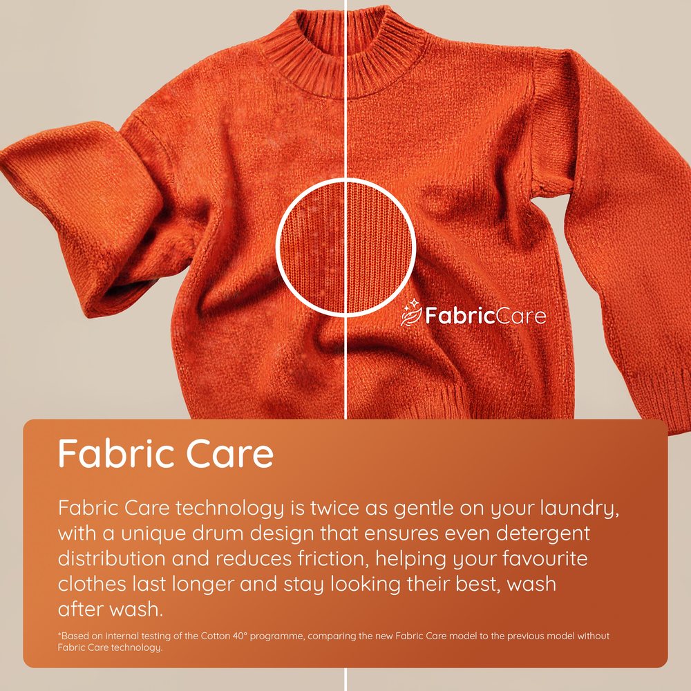 - Fabric Care Drum – Gentle washing to reduce wear on clothes
