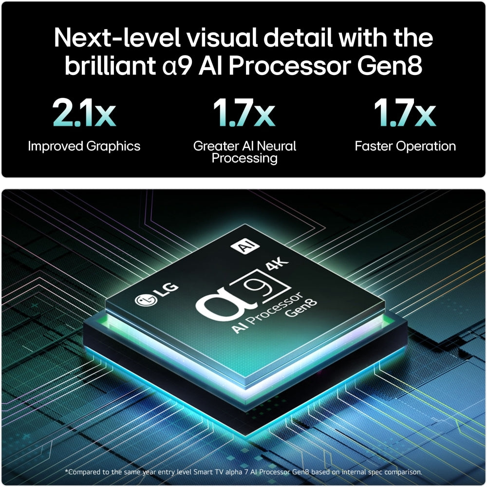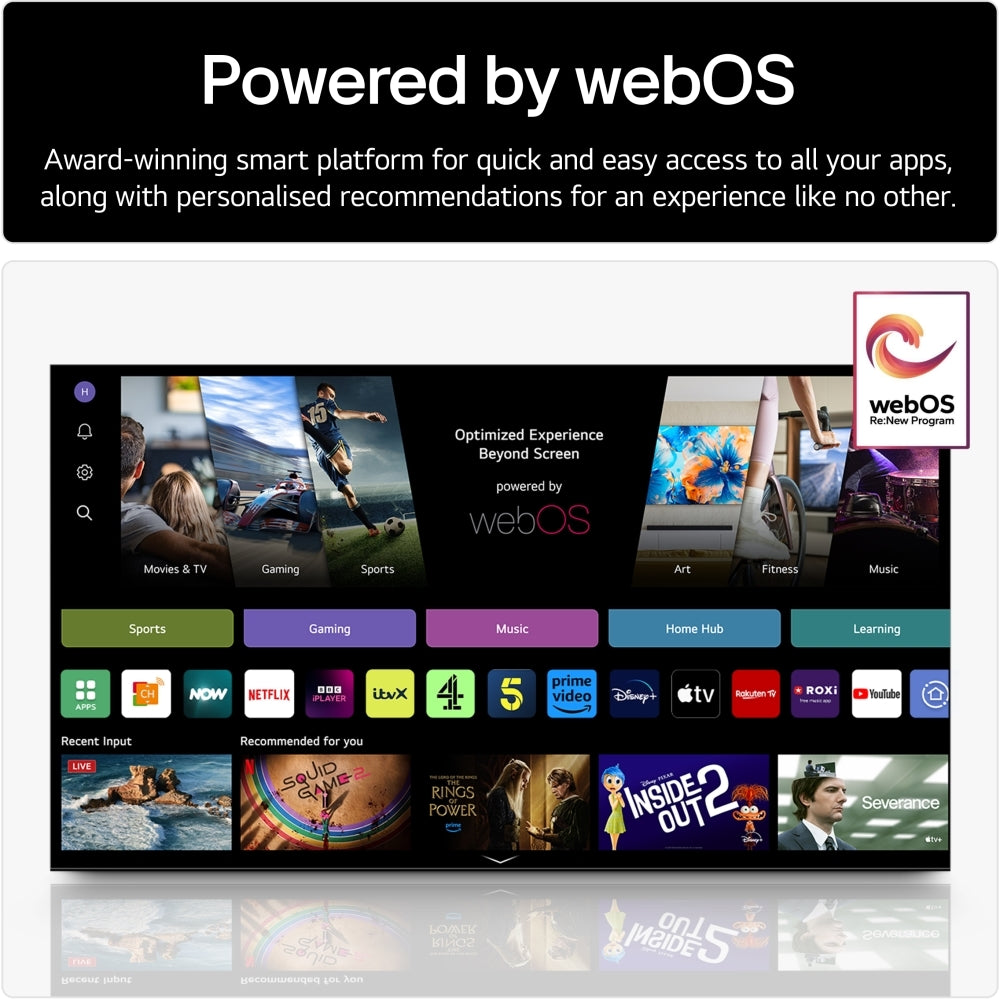 Enjoy cinematic picture quality on a 55" OLED screen with perfect blacks, vibrant colours, and immersive audio. Powered by LG’s AI processor and OLED evo panel technology, this TV delivers exceptional HDR performance, gaming features, and intuitive webOS smart platform.