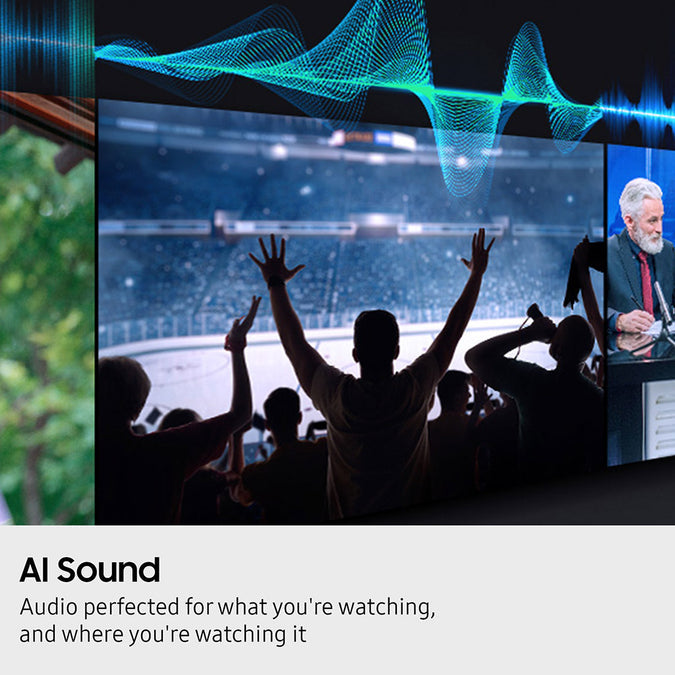 A smart 65" 4K QLED TV from Samsung delivering vivid picture quality with AI-enhanced processing, vibrant Quantum Dot colours, and seamless streaming with Tizen OS.