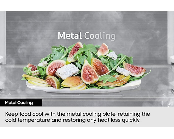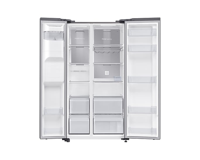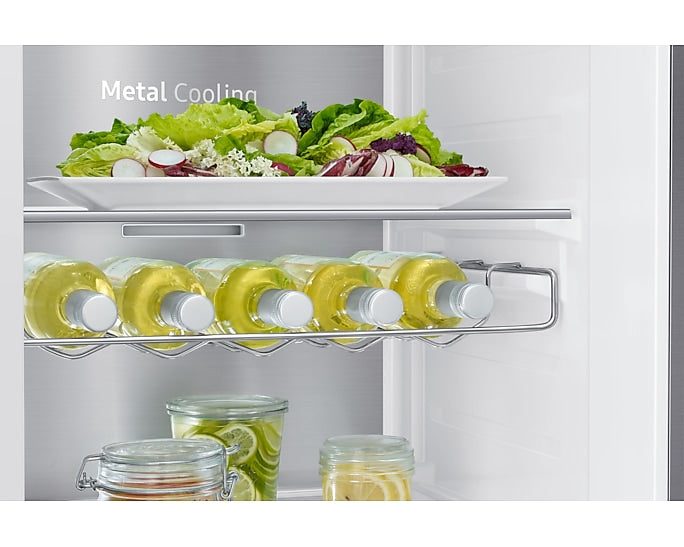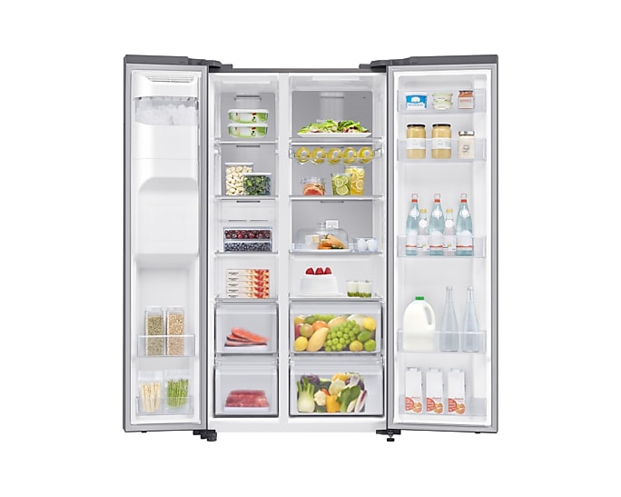 Discover the magic of Samsung SpaceMax fridge freezers. With slimmer walls, you get more space inside without sacrificing size. All-Around Cooling ensures every item stays chilled no matter where you place it. Plus, use the SmartThings app for energy usage tracking and helpful notifications. Enjoy cool, fresh food and drinks with the metal cooling duct and built-in water and ice dispenser.